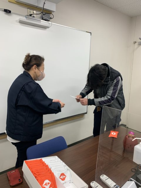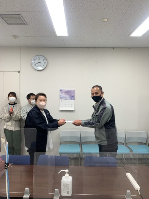 全員チャレンジ失敗、社歌の通り「嗚呼、川田電設〜♪」になってしまいました。新年早々それではあんまりなので恒例のジャンケン勝負で現場は篠原くん、デスクは加地さんがお年玉をゲットしました!